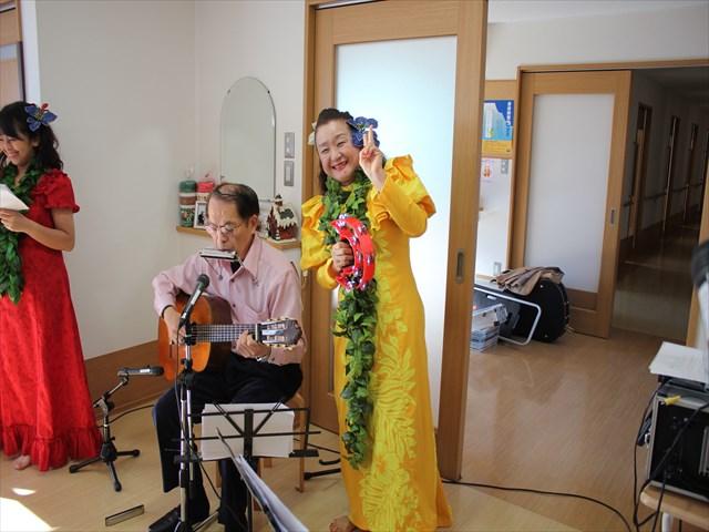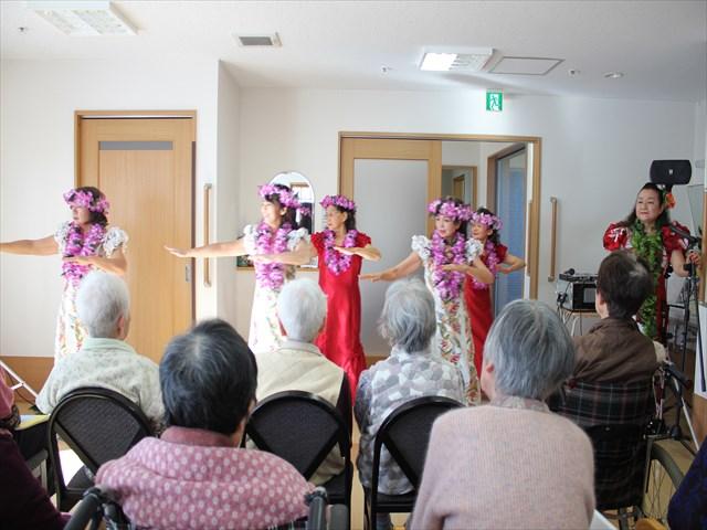ボランティアの方々のフラダンスとギター演奏を楽しまれた後は、皆でクリスマスケーキを頂きました。 利用者様、職員一同笑顔で楽しい時間を過ごさせて頂きました。